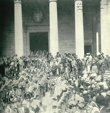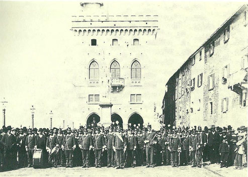 successivamente desueta e sostituita dalla definizione attuale, e nominava suo primo Maestro Direttore Luigi Para (1843-1871), musicista sammarinese allievo di Gioacchino Rossini.Ulisse Balsimelli (1872-1879),poi Carlo Scorrano (1879-1914),sotto la guida del quale la banda ebbe l'onore di eseguire l'intera "Cavalleria Rusticana" alla presenza di Pietro Mascagni (dal quale si conserva ancora l'autografo manoscritto sulla partitura).Dopo Cesare Piron (1915-1927) e Celio Gozi (1928-1944),fu inevitabile un periodo difficile,causato dal coinvolgimento diretto,seppure nei limiti della pacifica neutralita',nei tragici eventi bellici del'44-'45.