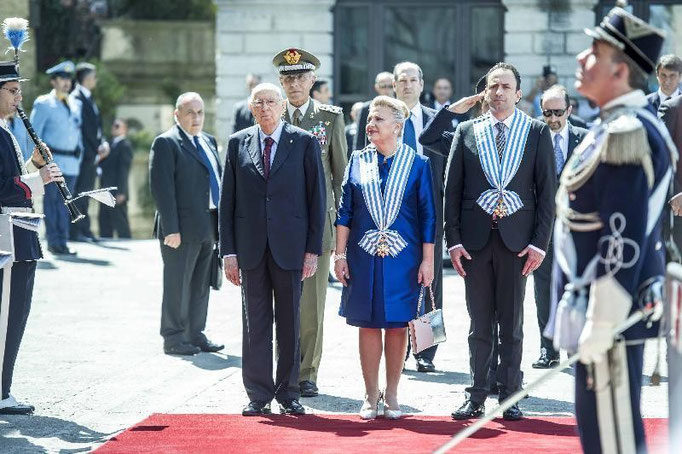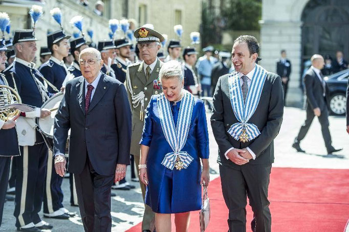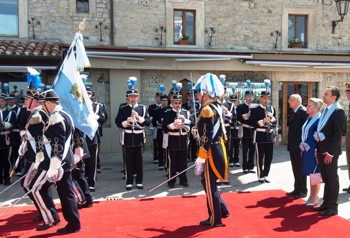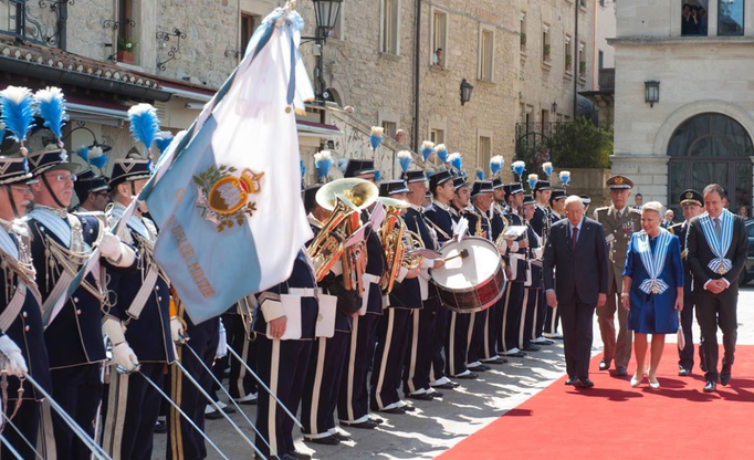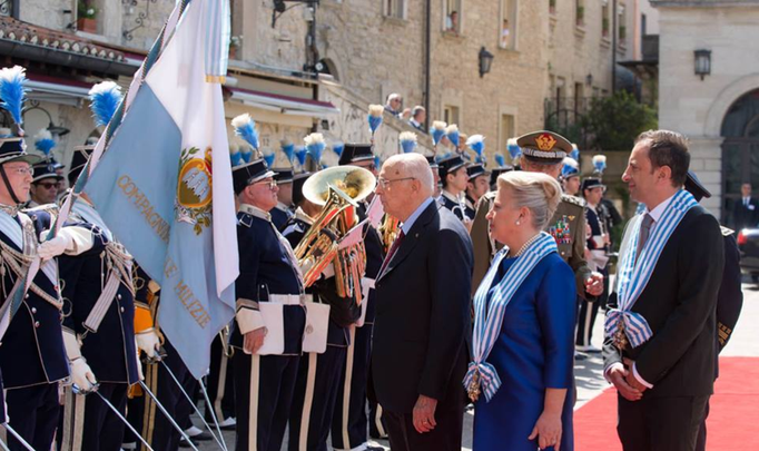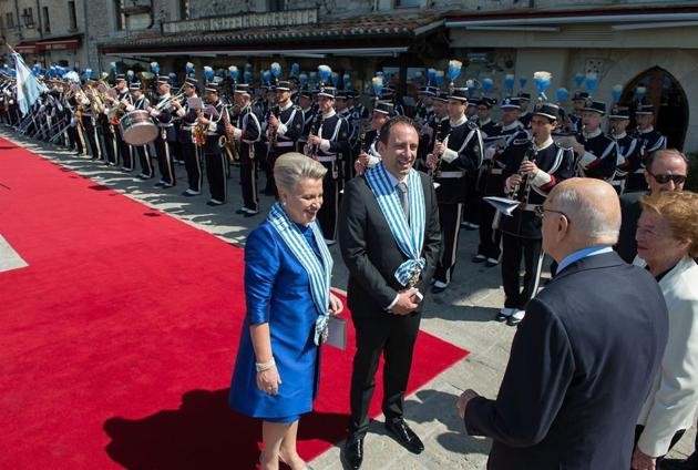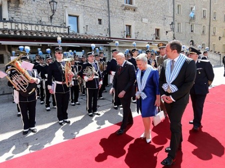 Stefano Palmieri, nel Palazzo Pubblico. Ad accoglierlo, con tutti gli onori, in Piazza della Libertà, la Banda Militare della Repubblica di San Marino (diretta dal Ten Maestro Stefano Gatta.